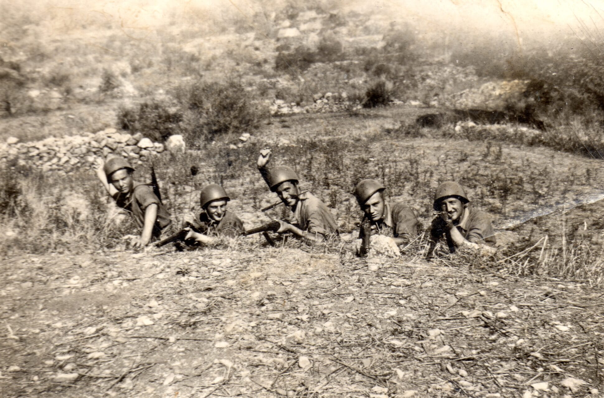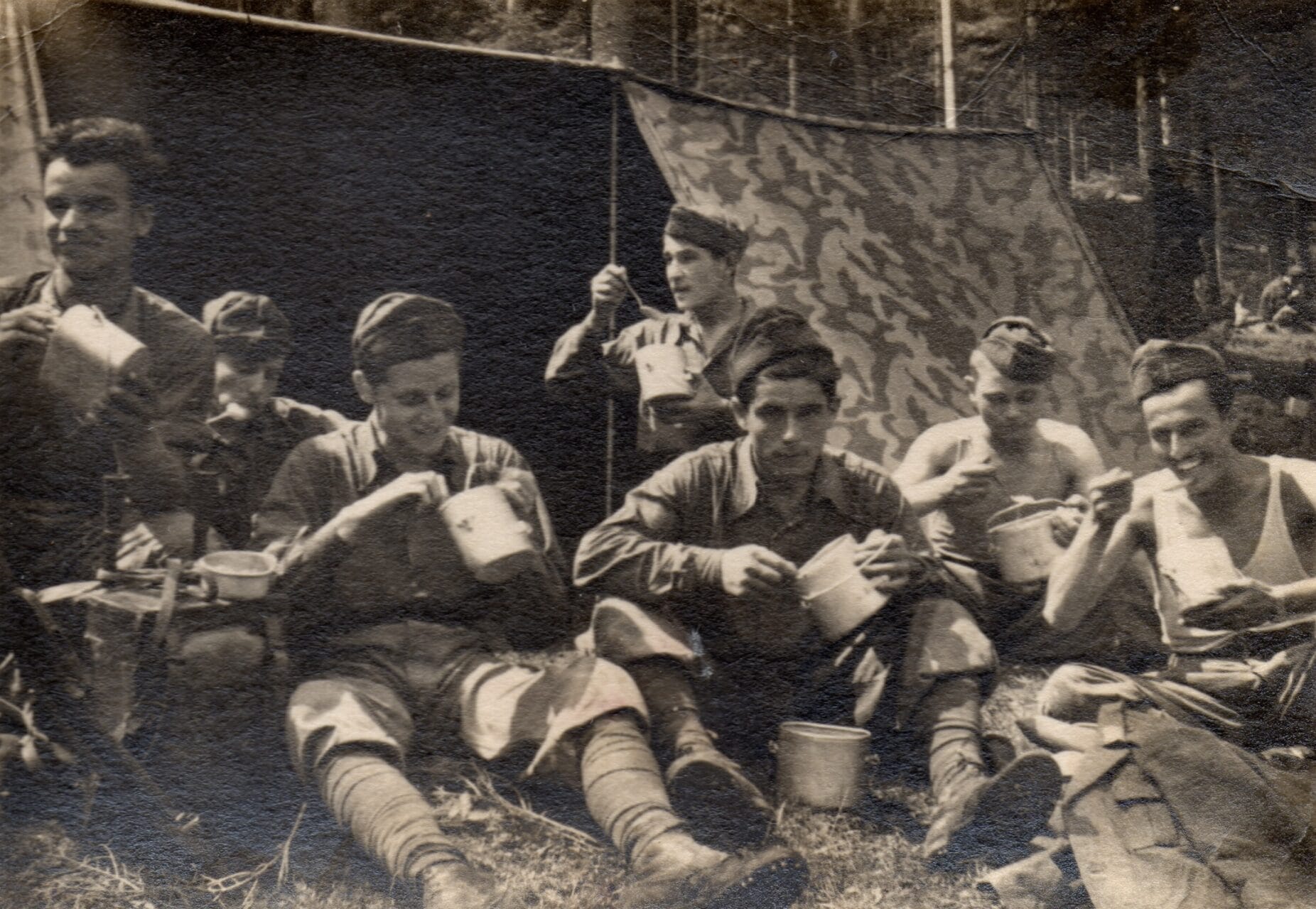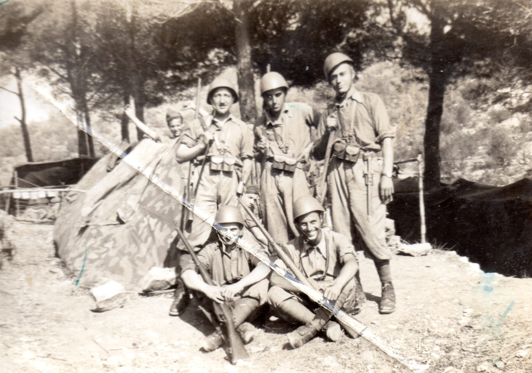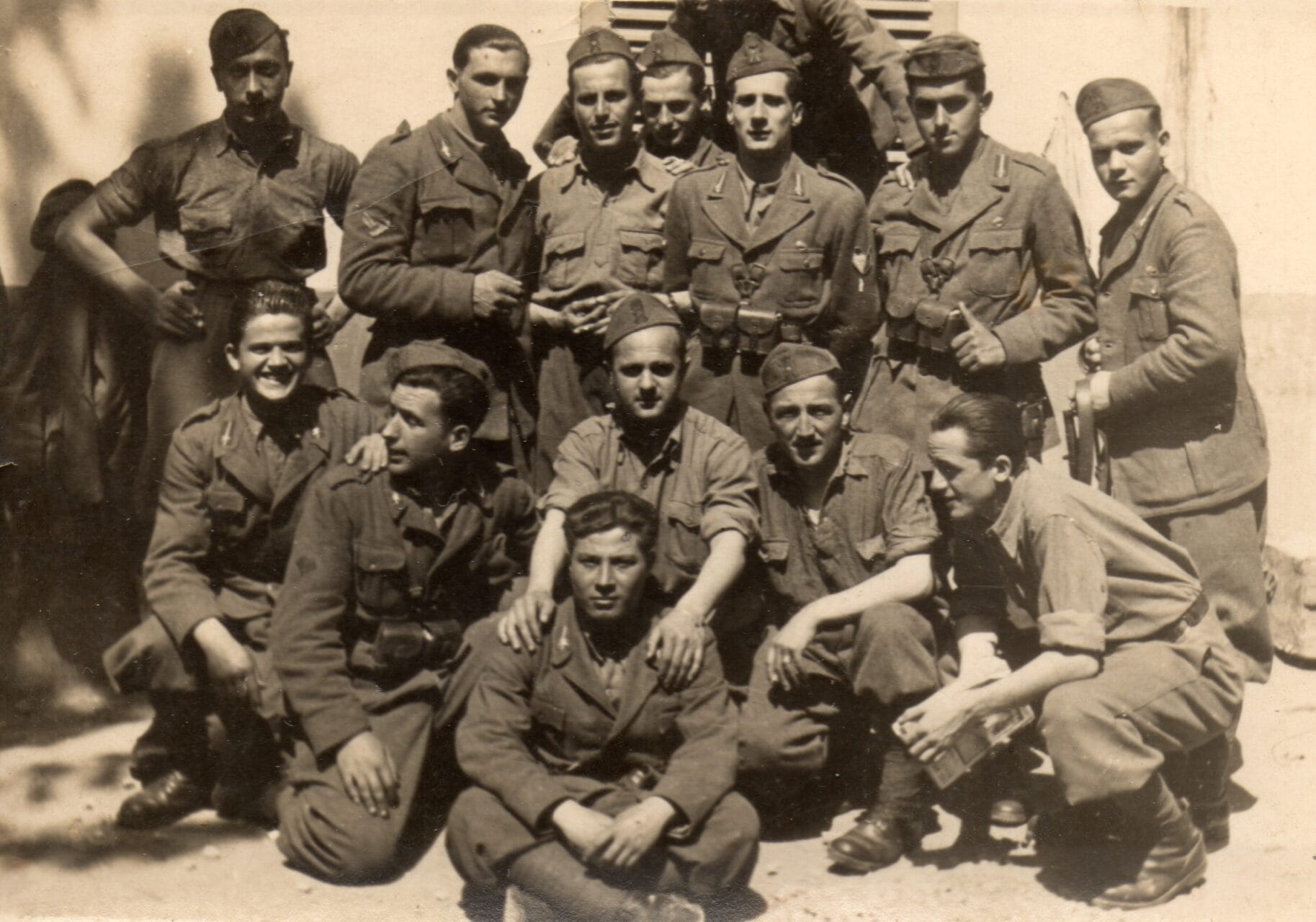 Anche queste tre immagini del periodo militare di Dino testimoniano momenti di convivenza con i commilitoni del 78° Reggimento Lupi di Toscana. Nella foto in cui è ripreso durante il rancio, come spesso accade Dino è sorridente al pari degli altri commilitoni. La sensazione della truppa era che comunque andava tutto bene e nulla avrebbe scalfitto il loro morale.