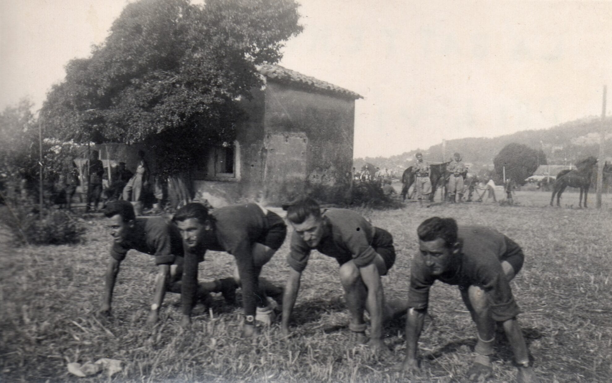 Nelle prime due foto si vede Dino in gruppo e impegnato nella finale della corsa dei 100 metri. Era infatti consuetudine tenere sempre impegnati i militari, e la gara di corsa premiava il vincitore con una breve licenza. Questo naturalmente accadeva quando la truppa era in Italia e non impegnata in attività di guerra.